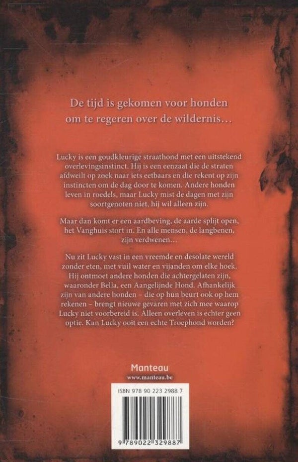 Lucky is een goudkleurige straathond met een uitstekend overlevingsinstinct. Hij is een eenzaat die de straten afdweilt op zoek naar iets eetbaars en die rekent op zijn instincten om de dag door te komen. Andere honden leven in roedels, maar Lucky mist de dagen met zijn soortgenoten niet, hij wil alleen zijn.Maar dan komt de Grote Grom. De aarde splijt open, het Vanghuis stort in. En alle langbenen zijn verdwenen...Nu zit Lucky vast in een vreemde en desolate wereld zonder eten, met vuil water en vijanden om elke hoek. Hij ontmoet andere honden die achtergelaten zijn, waaronder Bella, een Aangelijnde Hond. Afhankelijk zijn van andere honden - en dat die honden ook op hem rekenen - brengt ook nieuwe gevaren met zich mee waarop Lucky niet voorbereid is, maar alleen overleven is geen optie. Kan Lucky ooit echt een Troephond worden?