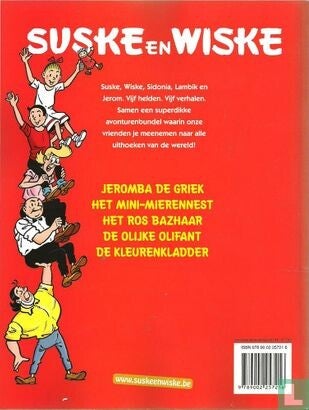 Suske, Wiske, Sidonia, Lambik en Jerom. Vijf figuren. Vijf verhalen. Ontdek deze superdikke avonturenbundel waarin onze helden je meenemen naar alle hoeken van de wereld!s