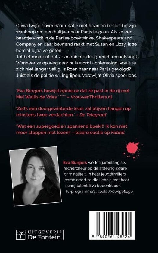 Olivia twijfelt over haar relatie met Roan en besluit een half jaar naar Parijs te gaan. Daar lacht het leven haar toe, maar dan ontvangt ze anonieme dreigberichten... Een spannende jeugdthriller.