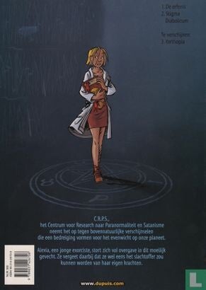 Het Centrum voor Research naar Paranormaliteit en Satanisme (C.R.P.S.) is een onopvallend instituut ter bestrijding van occulte fenomenen. De dag waarop de jonge Alexia er gaat werken, komt haar leven in een stroomversnelling. Want haar talent als exorciste, dat ze nog niet helemaal onder controle heeft, is haar belangrijkste gereedschap, maar ook de oorzaak van haar problemen.De krachten die ze heeft gekregen van haar voorgangster, de heks van Salem, bieden haar de mogelijkheid het raadsel op te lossen van de stormeik, een heilige boom die water gebruikt als wapen. In vloeibare toestand om mensen te verdrinken als ze te dicht in de buurt komen, of in bevroren vorm als blank wapen, om er te nieuwsgierige voorbijgangers mee te doorboren.Een adembenemende enquête voert Alexia tot in Yorthopia, de mythische plek waar alle occulte kennis is verzameld. Maar na haar onderzoek moet de jonge vrouw ook het C.R.P.S. verlaten, want daar wordt iedereen bang voor Alexia's krachten.De auteursBenoît Ers en Dugomier zijn geen vreemden voor elkaar. Samen hebben ze de humoristische avonturenreeks "Muriël en Schroefje" gemaakt. Daarvan zijn zes albums verschenen bij Le Lombard.Met "De duivels van Alexia" brengen de auteurs een verrassende, radicale verandering, zowel wat het verhaal betreft als in de tekeningen. Alexia is een moderne, complexe heldin die geconfronteerd wordt met twee soorten vijanden: noodlottige, occulte krachten en haar eigen twijfels over haar opdracht.