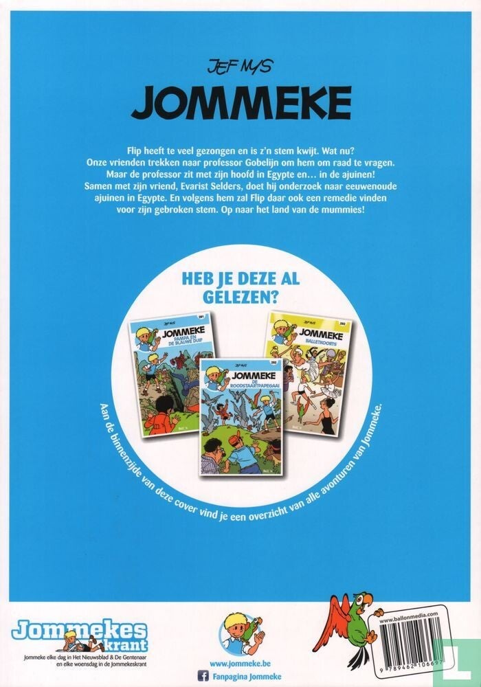Flip heeft te veel gezongen en is zn stem kwijt. Wat nu gezongen? Onze vrienden trekken naar professor Gobelijn om hem om raad te vragen. Maar de professor zit met zijn hoofd in Egypte en ... in de ajuinen! Samen met zijn vriend, Evarist Selders, doet hij onderzoek naar eeuwenoude ajuinen in Egypte. En volgens hem zal Flip daar ook een remedie vinden voor zijn gebroken stem. Op naar het land van de mummies!