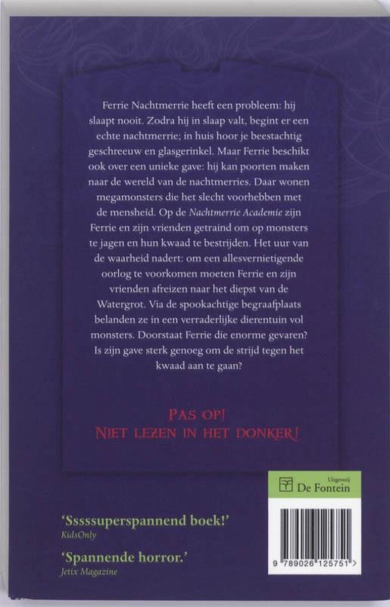 Op de Nachtmerrie Academie zijn Ferrie en zijn vrienden getraind om op monsters te jagen en kwaad te bestrijden. Dit is hun kans om een allesvernietigende oorlog te voorkomen. Om de Behoeder te redden moeten Ferrie en zijn vrienden afreizen naar het diepst van de Watergrot. Hun reis loopt via de spookachtige begraafplaats en midden door de verraderlijke en van monsters wemelende dierentuin. Doorstaat Ferrie die enorme gevaren? Is zijn gave sterk genoeg om de strijd tegen het kwaad aan te gaan?